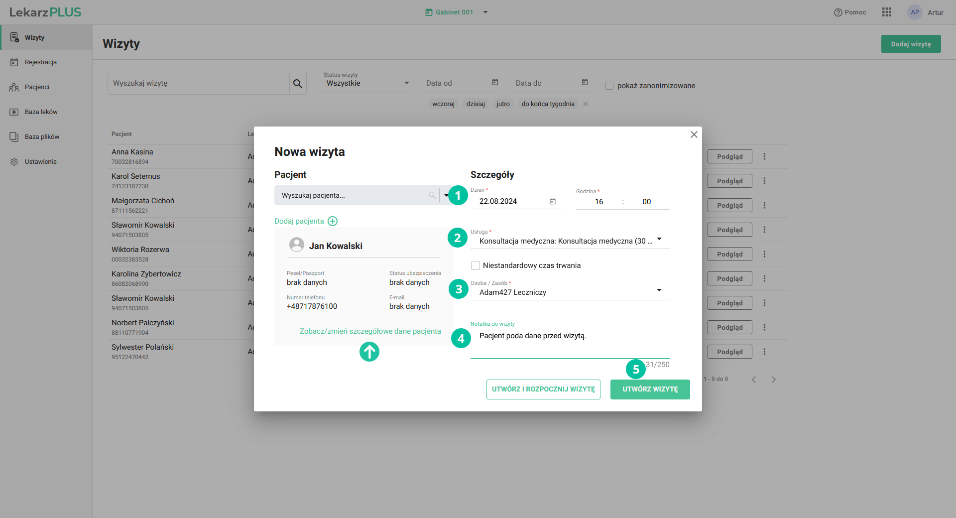 W celu zapisania wizyty kliknij UTWÓRZ WIZYTĘ.