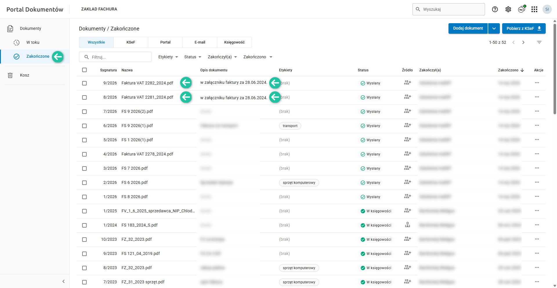 Wysłane dokumenty zostaną zaimportowane bezpośrednio do Portalu Dokumentów, z których bezpośrednio zostaną przesłane do programu księgowego.