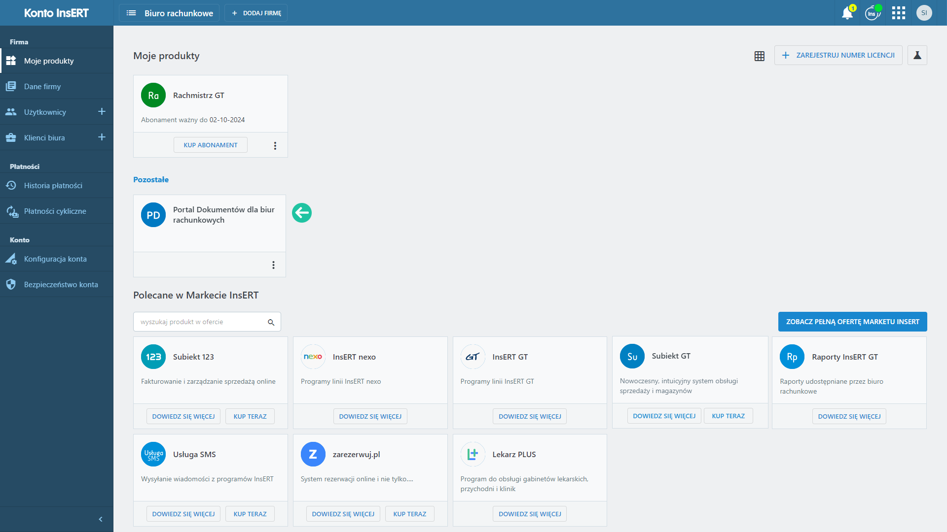Po aktywacji, Portal Dokumentów dla biur rachunkowych, widoczny jest w module Moje Produkty, w sekcji Pozostałe.