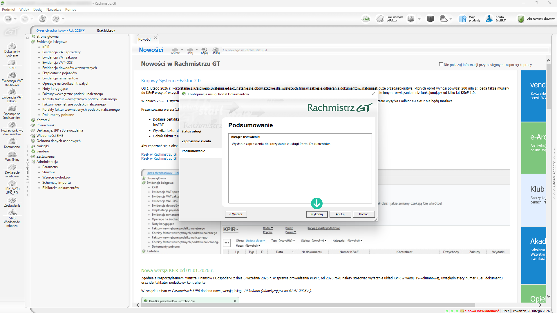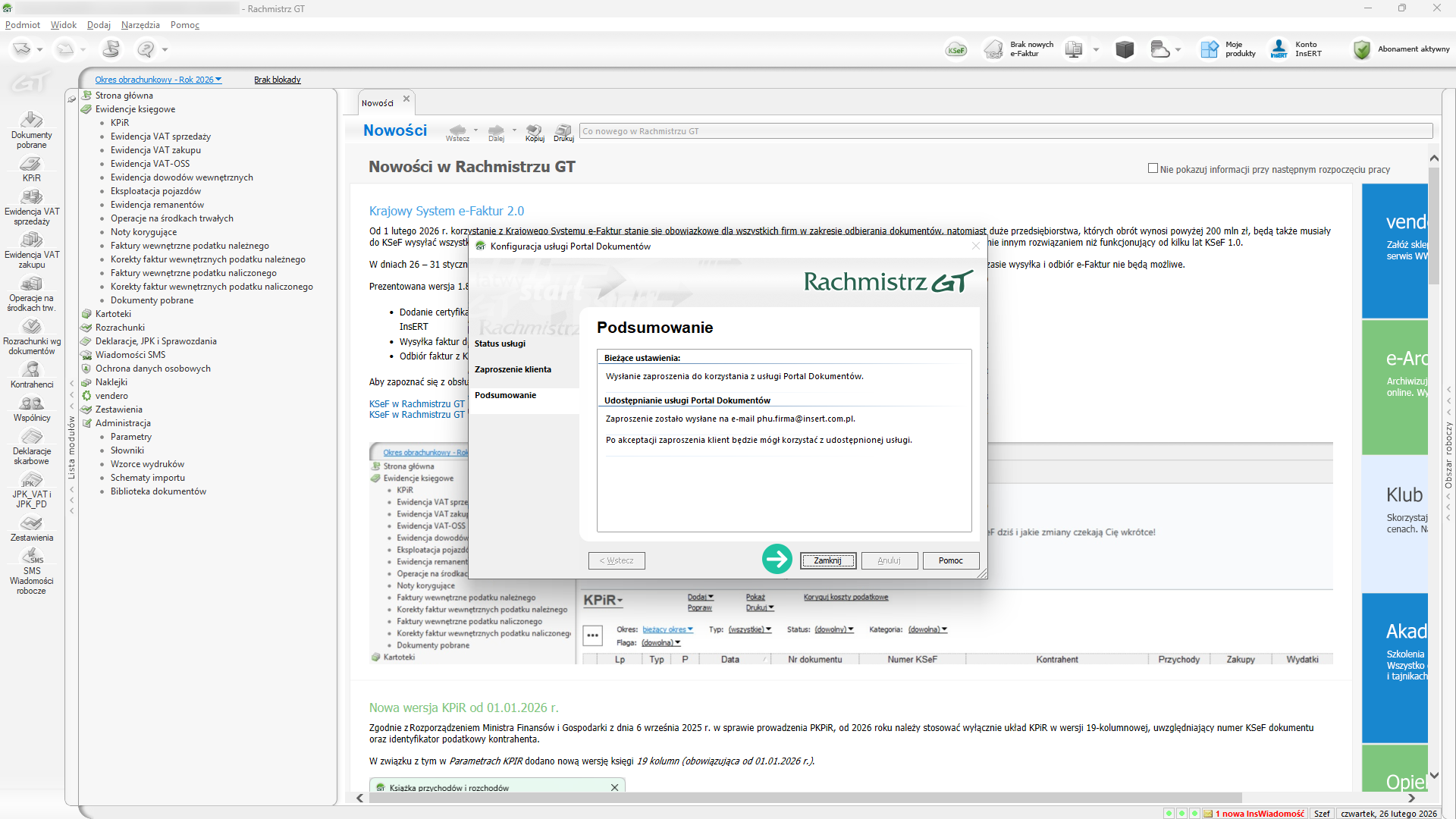 W celu zaproszenia klienta do korzystania z Portalu Dokumentów musisz uruchomić program księgowy (Rachmistrz GT lub Rewizor GT). Szczegóły w kroku udostępnianie usług klientom.