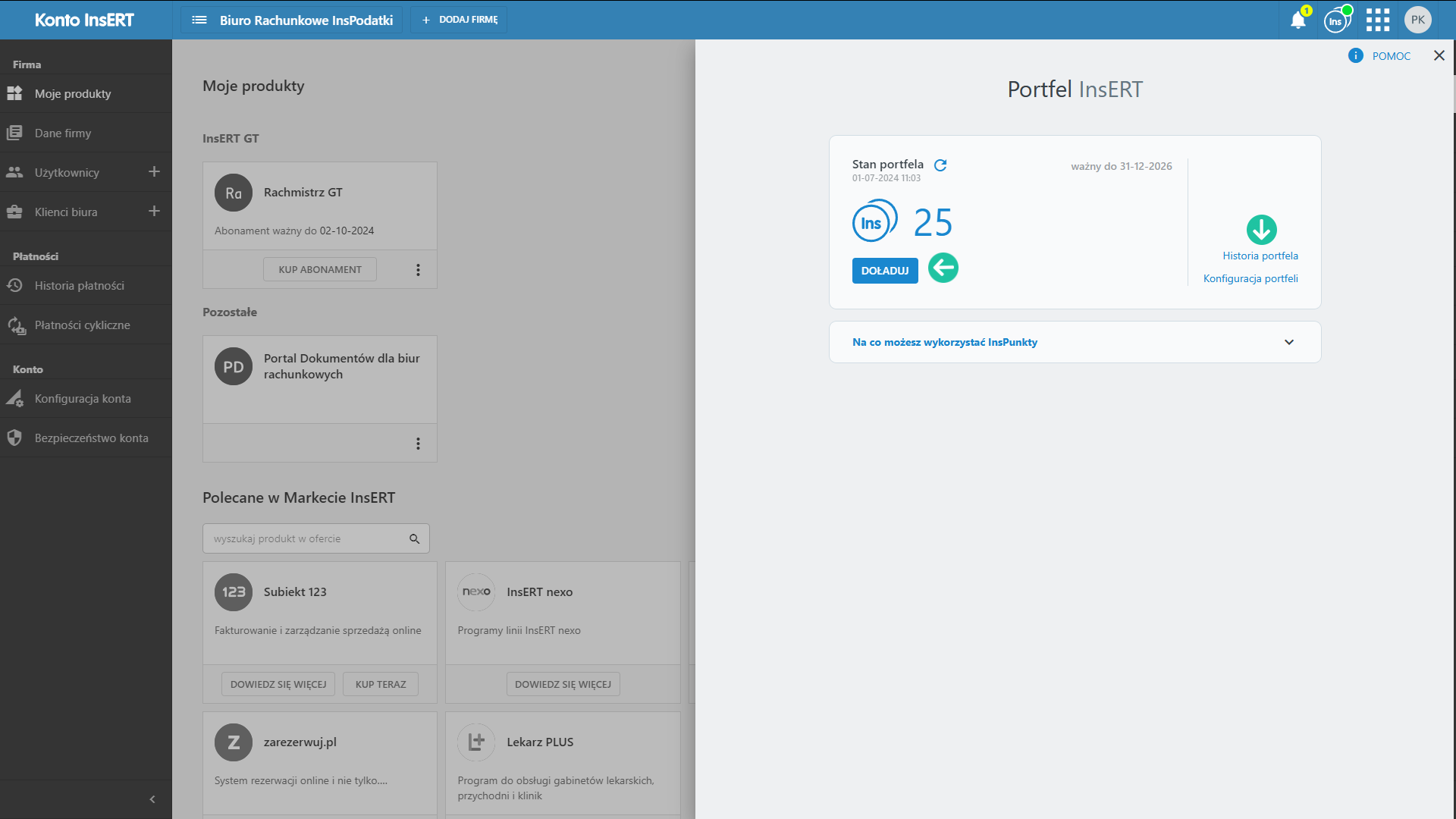 Do korzystania z Portalu Dokumentów niezbędne są InsPunkty, których aktualny stan zawsze sprawdzisz w swoim Portfelu InsERT.