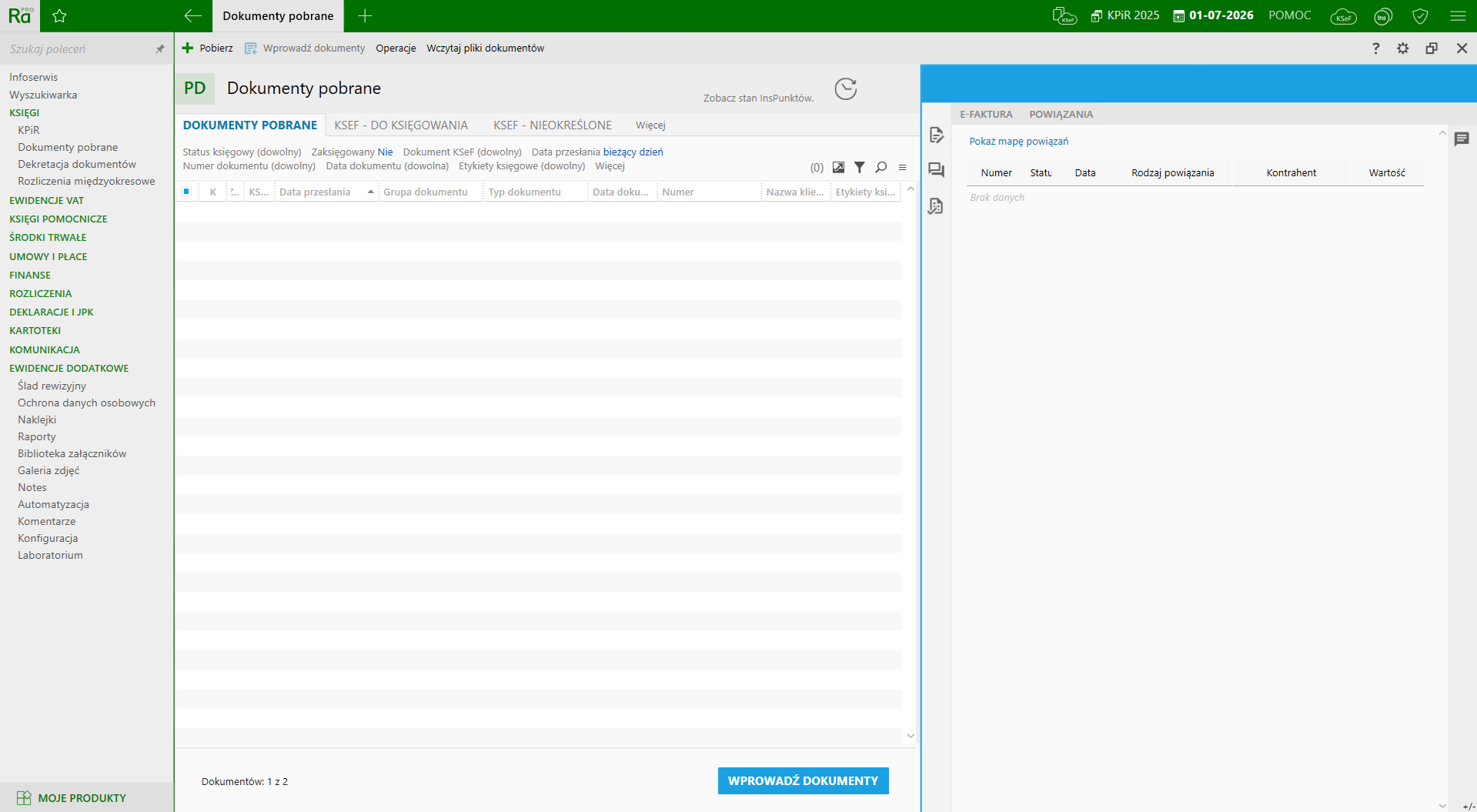 Moduł Dokumenty pobrane został aktywowany. Możesz w nim odtąd odbierać dokumenty przekazane przez klienta za pośrednictwem Portalu Dokumentów.