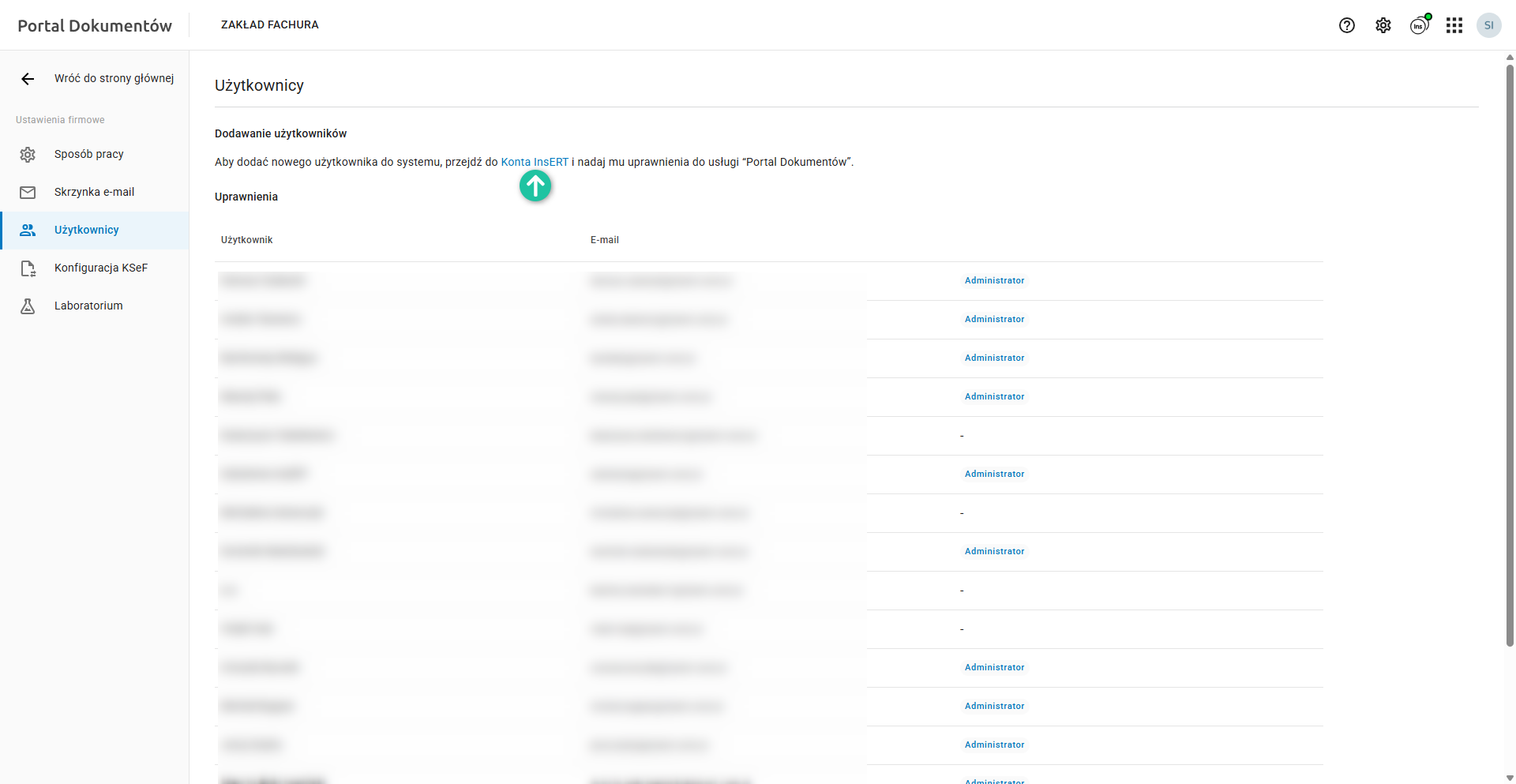 Konto InsERT – nadanie uprawnień do Portalu Dokumentów