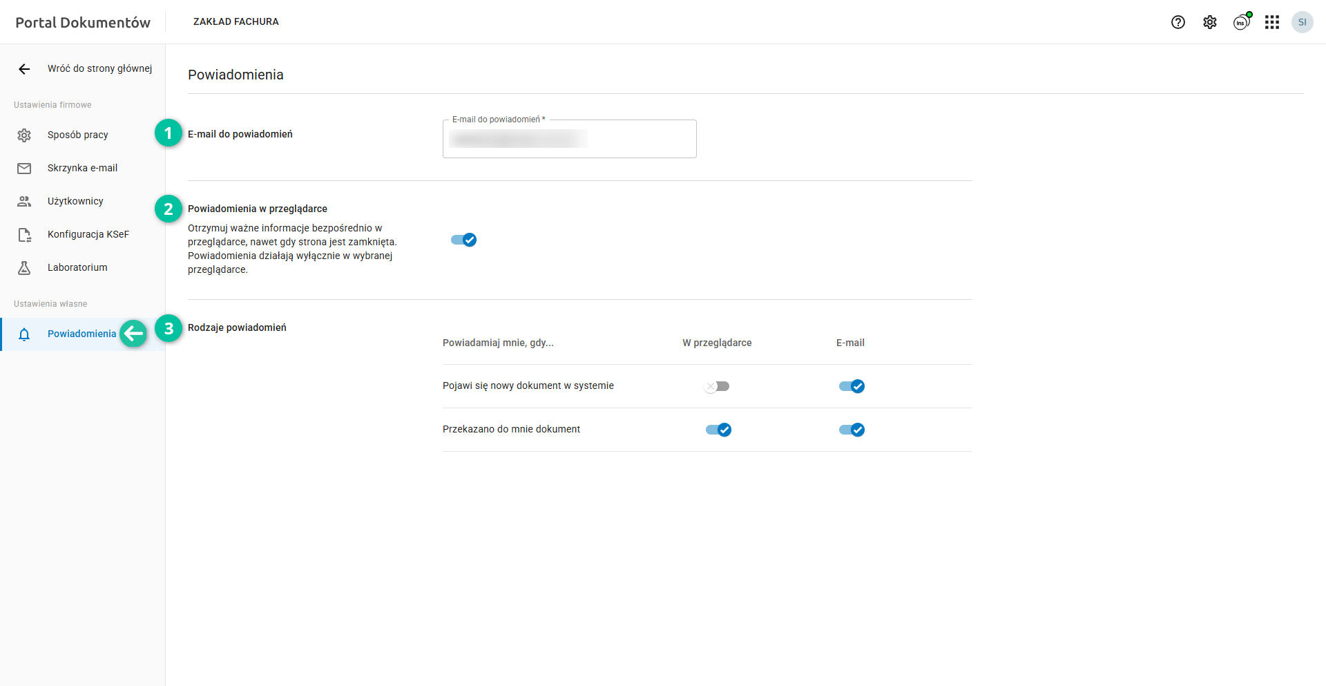 Każdy z użytkowników Portalu Dokumentów może otrzymywać różnego rodzaju powiadomienia w związku z obiegiem dokumentów w firmie.