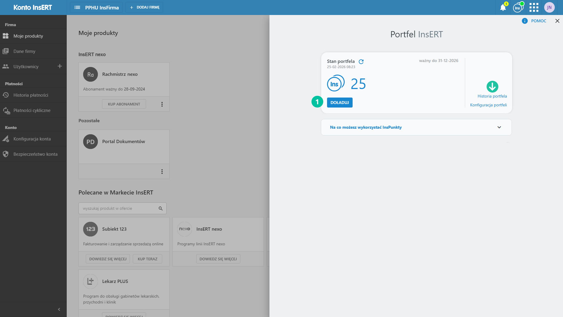 Do korzystania z Portalu Dokumentów niezbędne są InsPunkty, których aktualny stan zawsze sprawdzisz w swoim Portfelu InsERT.
