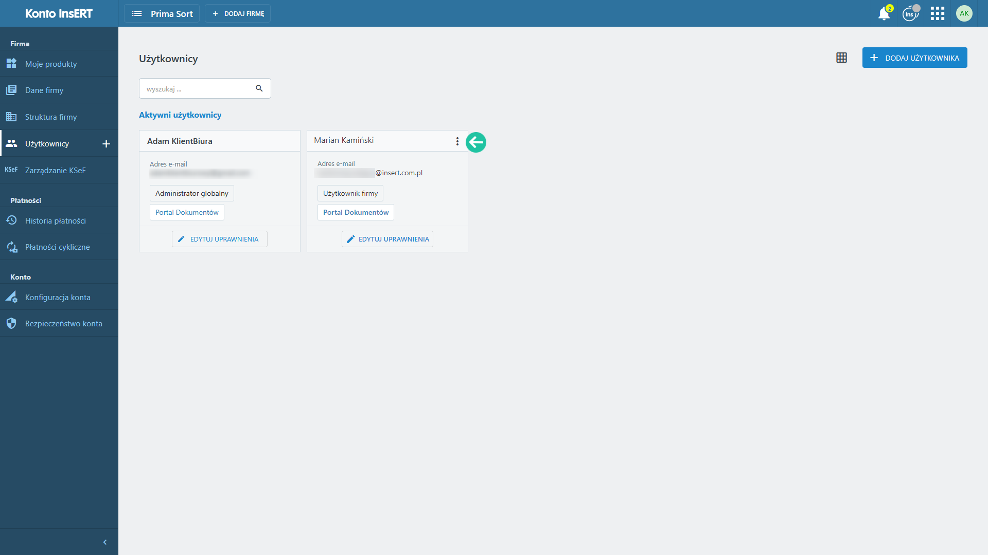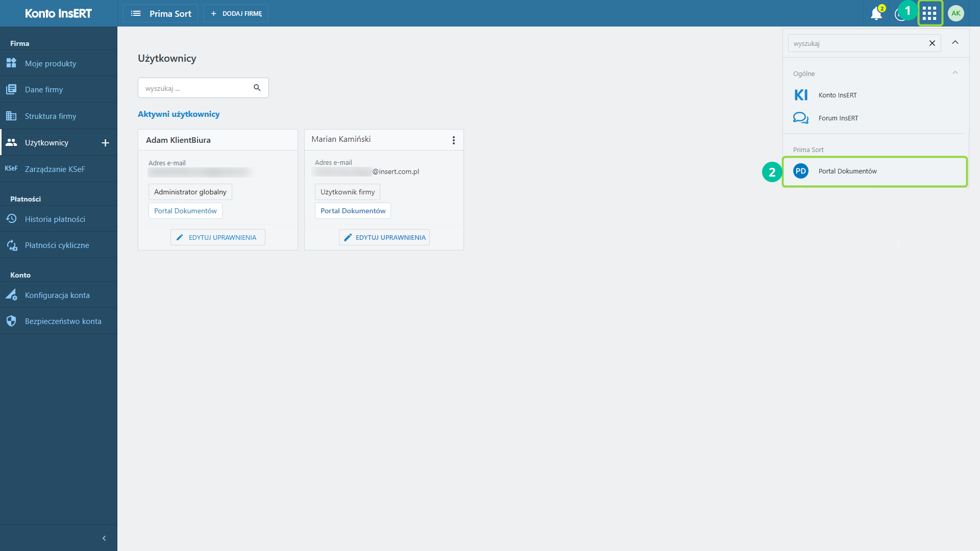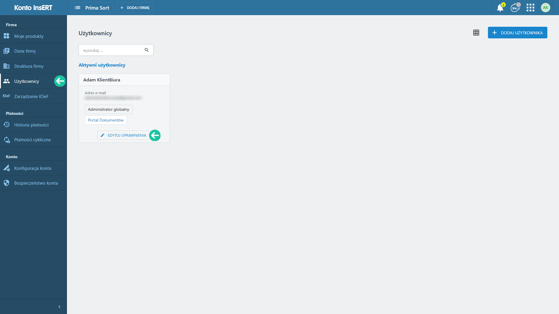 Konto InsERT – uprawnienia użytkowników do Portalu Dokumentów