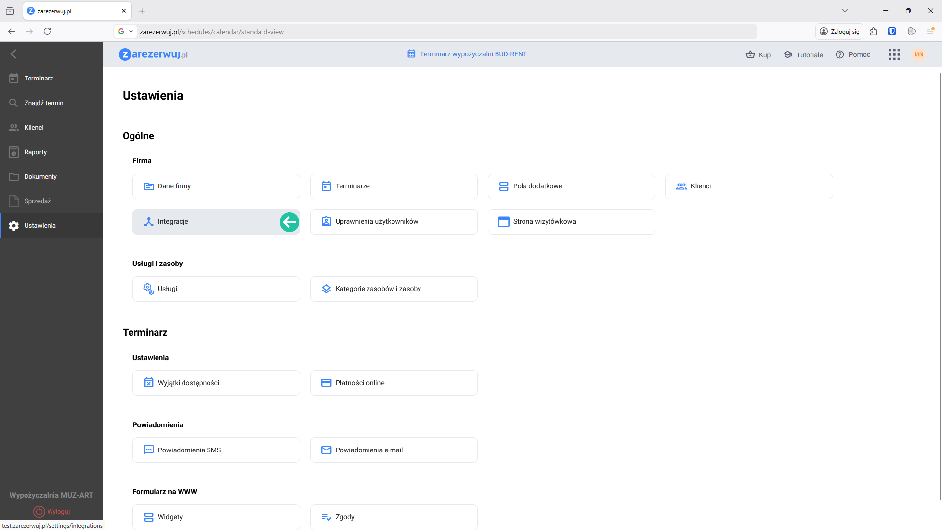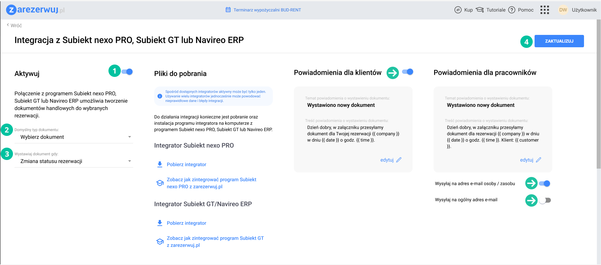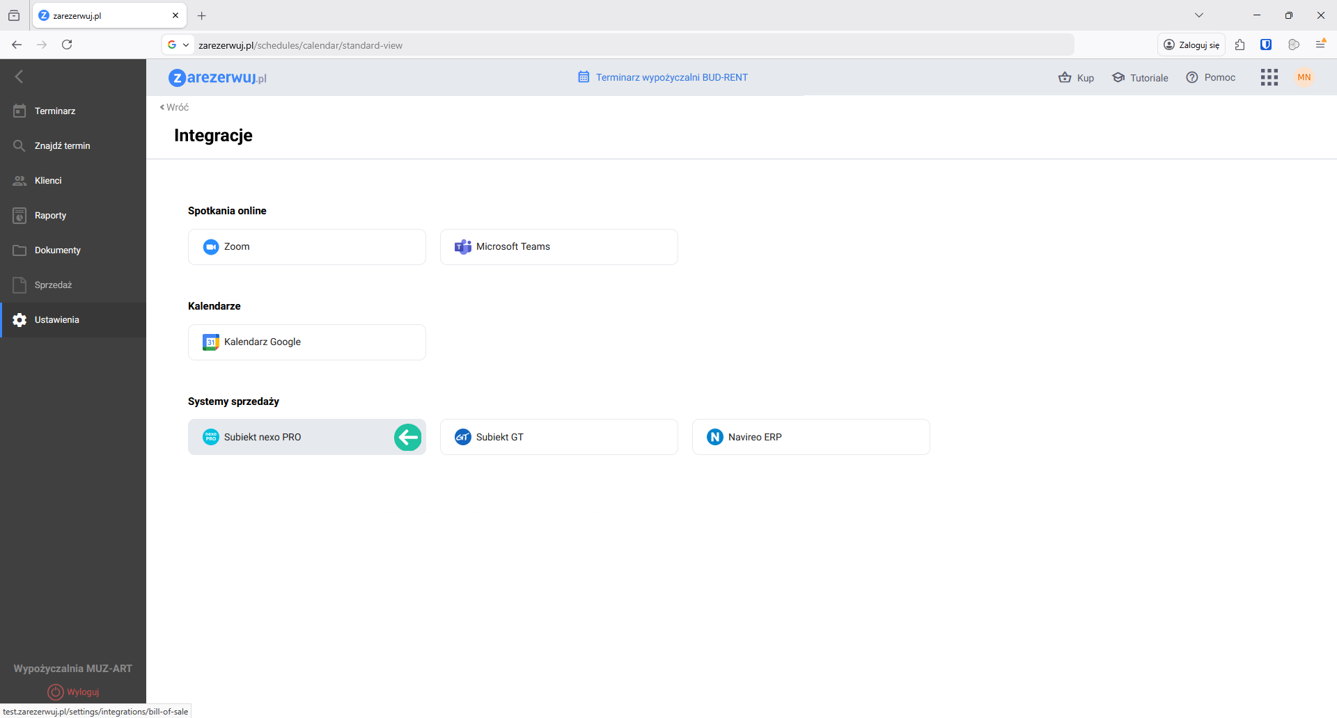 Aby rozpocząć integrację z programem Subiekt nexo PRO, wykonaj poniższe kroki w aplikacji zarezerwuj.pl: